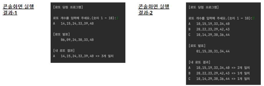 간략 소개 : 로또는 1-45개의 숫자 사이의 값중 6개를 맞추면 당첨되는 복권입니다. 로또의 개수를 구매하고(구매수량 입력), 당첨번호를 생성한다. 이후, 구매한 로또의 당첨번호를 판단하는 프로그램을 작성해 보세요.