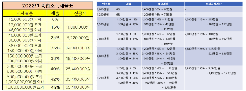 연소득이 1,200만원 이하일 때는 추가적인 세금 계산이나 누진 공제 계산이 필요없기 때문에
