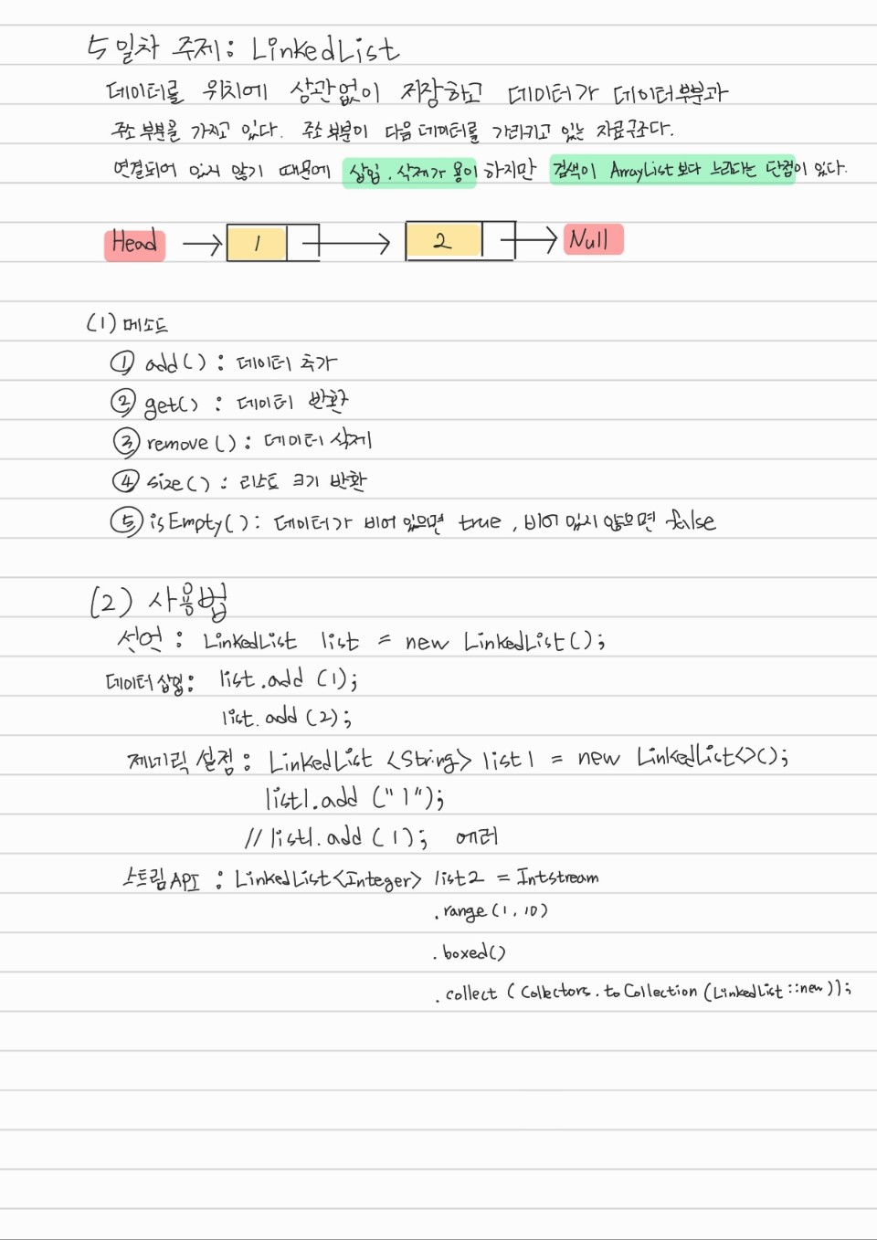 자료구조 1 Page 노트 정리 5일차 주제 : LinkedList