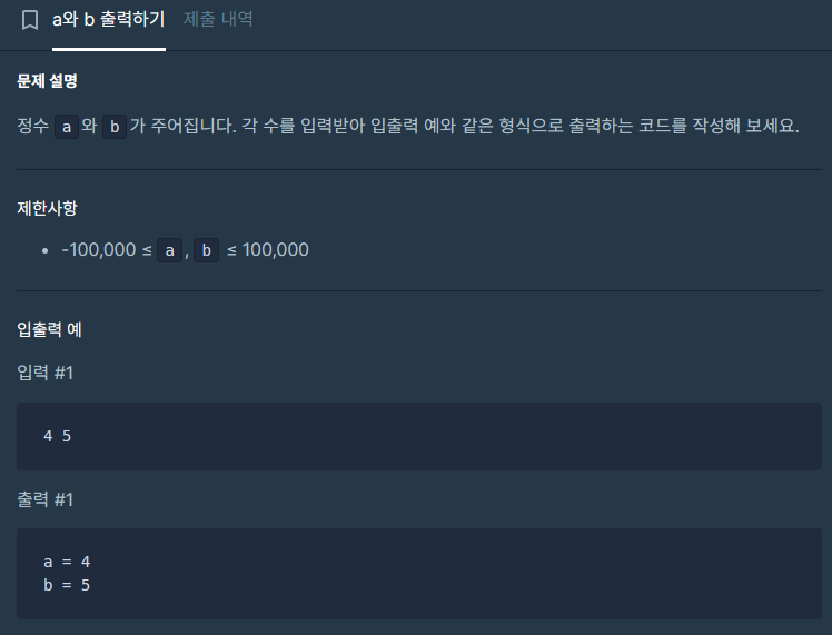 a와 b 출력하기