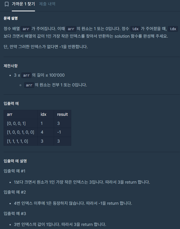System.out.println(solution(new int[]{0, 0, 0, 1}, 1));