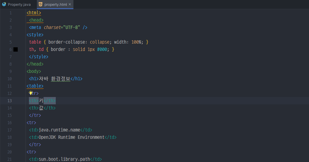 bw.write("<table>\n <tr>\n <th>키</th>\n <th>값</th>\n </tr>\n");