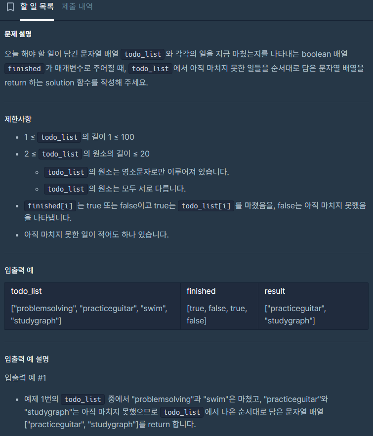 public static String[] solution(String[] todo_list, boolean[] finished) {