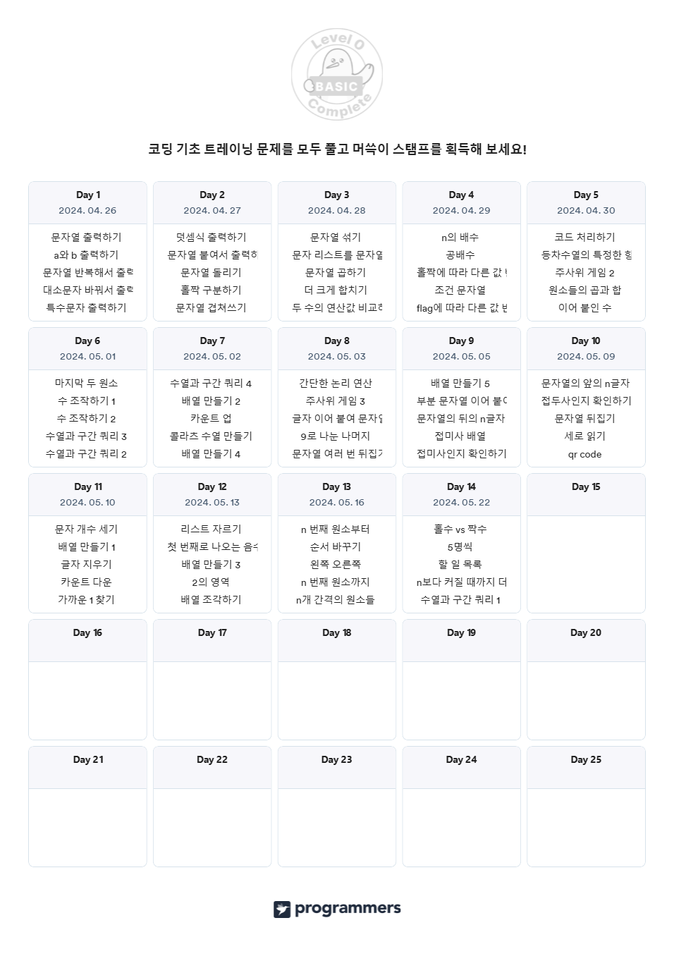 | Java 프로그래머스 코딩 기초 트레이닝 Day 15 리스트(배열), 문자열 (0) | 2024.06.11 |