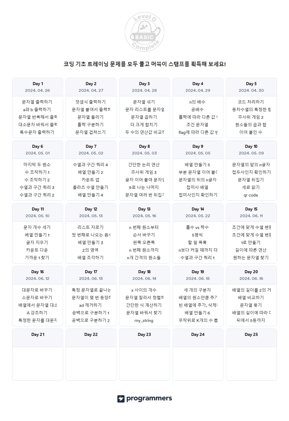 | Java 프로그래머스 코딩 기초 트레이닝 Day 17 문자열 (0) | 2024.06.13 |