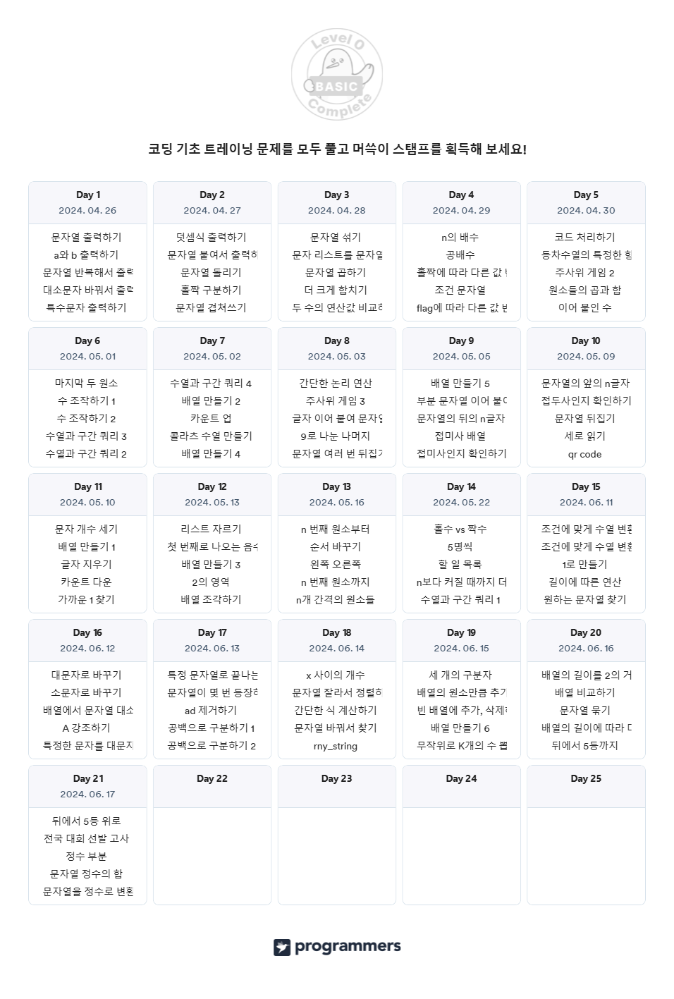 | Java 프로그래머스 코딩 기초 트레이닝 Day 19 문자열, 리스트(배열) (0) | 2024.06.15 |