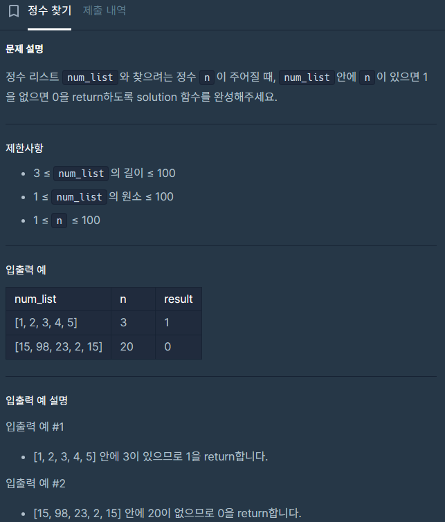 return Arrays.stream(num_list).anyMatch(x -> x == n) ? 1 : 0;