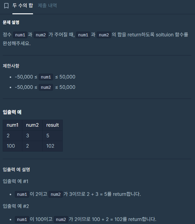 * 두 수의 합