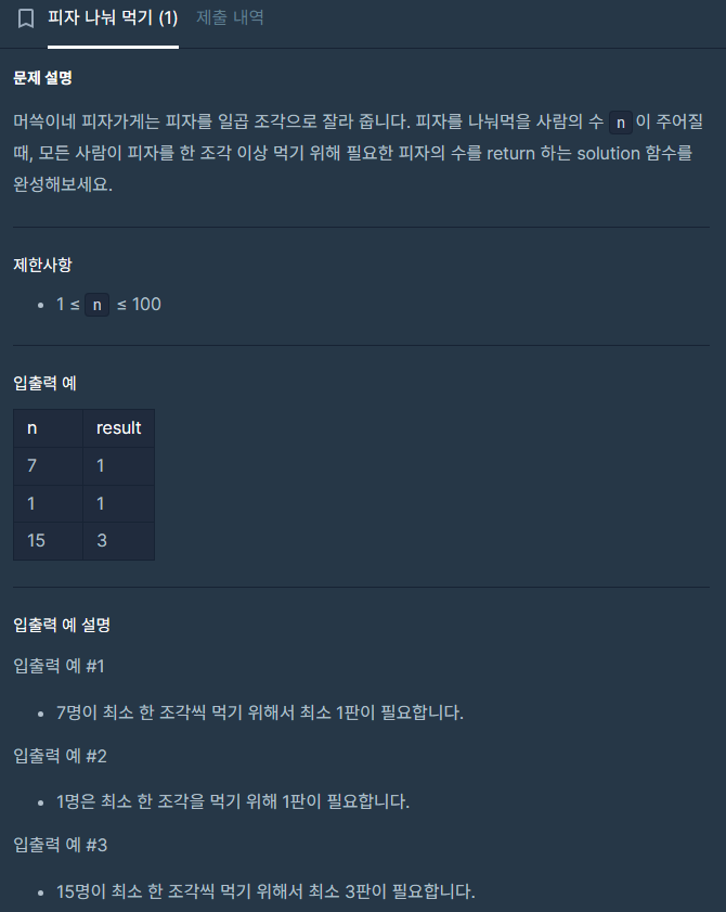 return pizza <= 1 ? 1 : (int) Math.ceil(pizza);