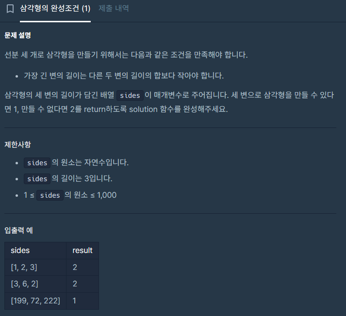 return sides[2] < sides[1] + sides[0] ? 1 : 2;